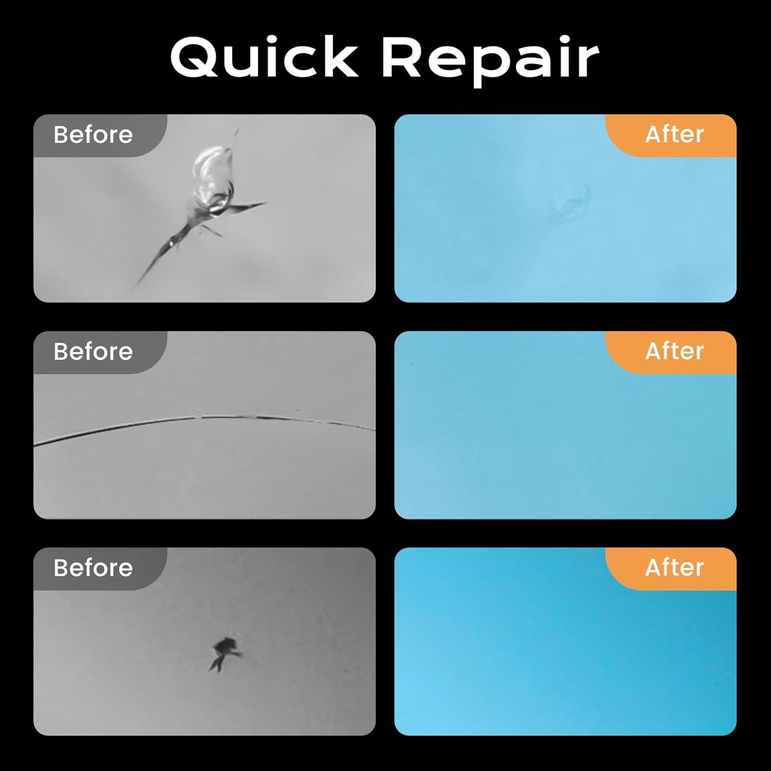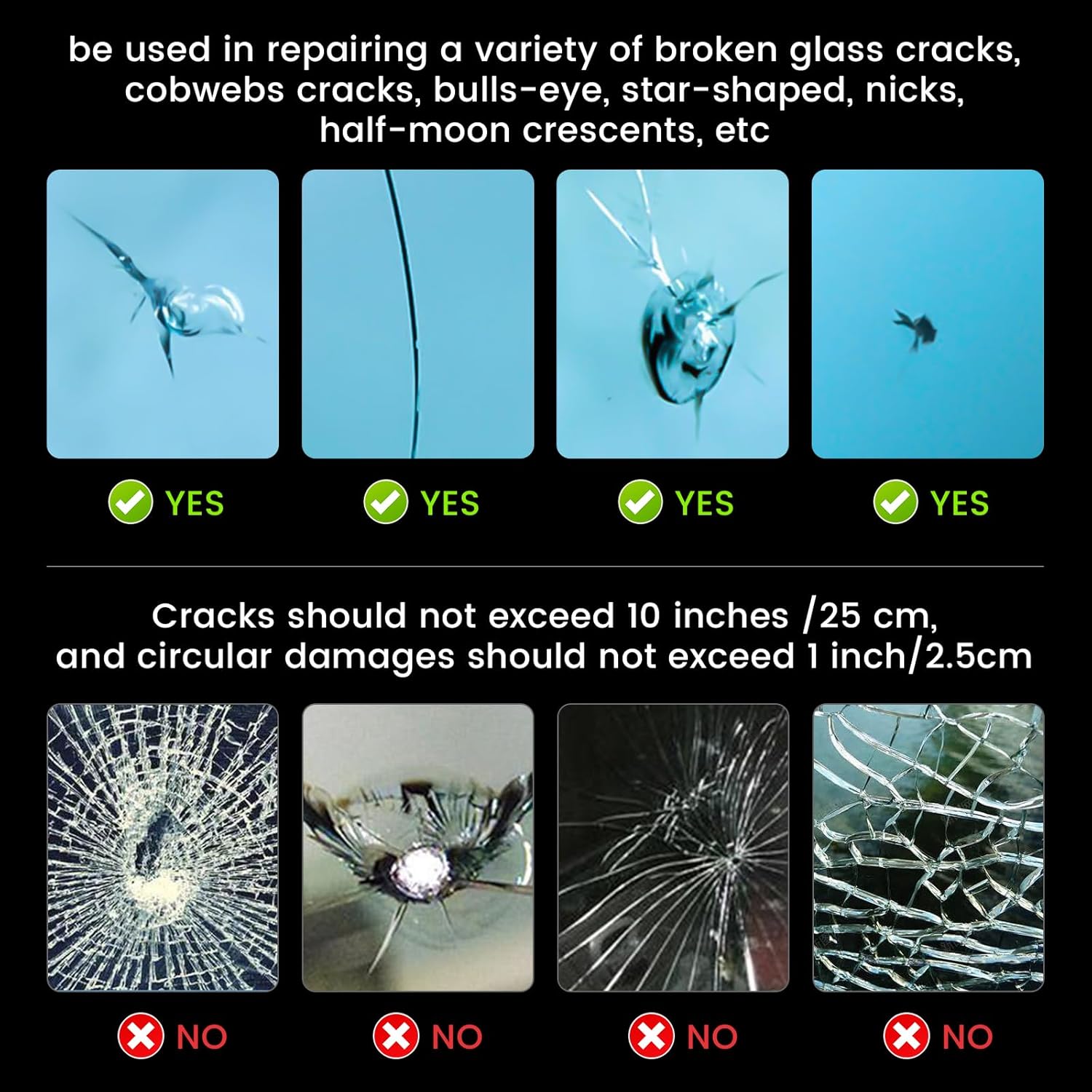 Windshield Repair Kit Not Suitable for Too Many Cracks or Too Long Glass Edges Pure Scratches, Small Dots Without Clear Cracks Are Not Suitable for This Windshield Repair Resin.Package Included2 X Repair Resin 3ml5x Cure Strips 2 X Sleeve Razor BladeReminder1. Windscreen Repair Kit Ideal Application Temperature is 60 to 90 F (15 to 32 C). Glue Will Dry Under Uv Light.if There is No Uv Light, Please Repair the Glue in the Sun.2.car Windshield Repair Kit Great for Most Types of Outer Glass Small Damaged by Double Layer Laminated Windshield Glass, So Maybe Just Suitable for the Front and Rear Windshield. It Does Not Work on Mobile Screens3.the Windscreen Repair Resin Solidifies in the Sun. Repair Should Be Performed in a Cool Place, Don't Let the Area Be Exposed to the Sun. then Let Sit in the Sun to Curing the Resin 15-20 Mins. Please Make Sure That the Permeate Was Completed and then Cured, Because It Can't Repaired Again After Cured.4. Reduce the Risk of Chemical Contact with Skin and Eyes,wear Safety Glasses and Gloves when Using This Product.
