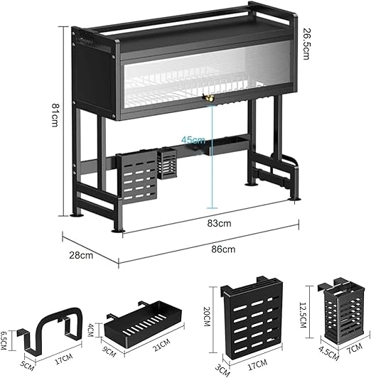 Premium Quality Heavy Duty Over The Sink Dish Drying Stand 3 Tier Large Dish Rack Over The Counter Dish Drying Rack for Kitchen Sink Shelf with Door Dish Organizer with Dust-Proof Cabinet